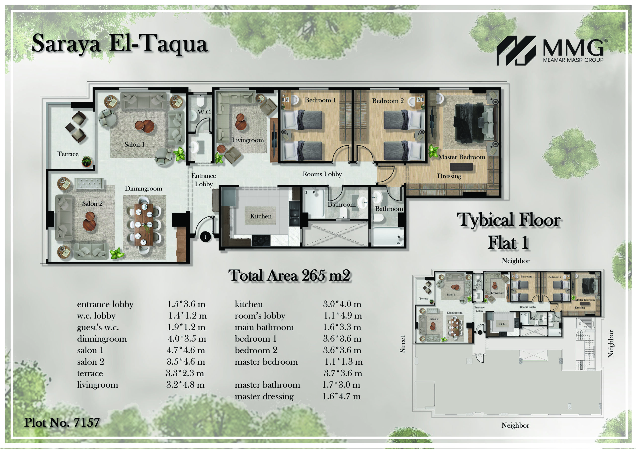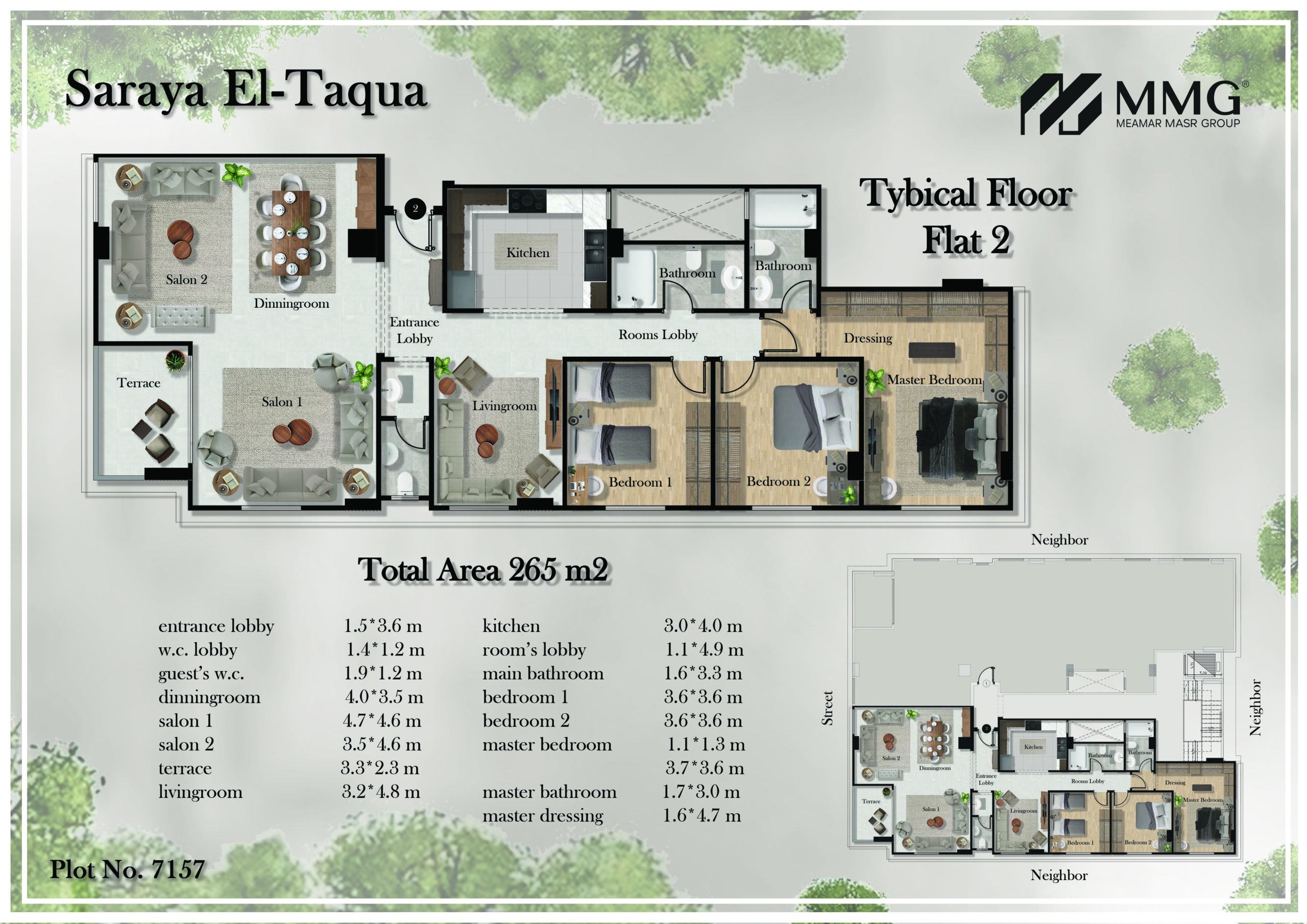 دور، حيث تبلغ مساحة كل وحدة 265 مترًا مربعًا،مما يوفر راحة ومساحة مثالية للحياة العائلية.